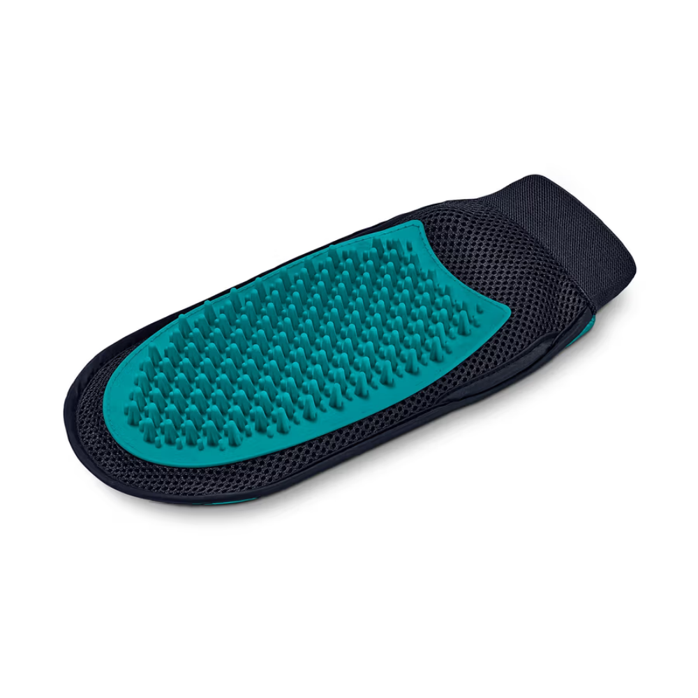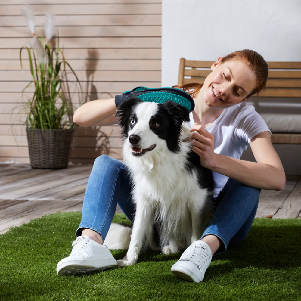• Equipped with a dual-sided functional surface: soft silicone nubs for massaging and a velour side for removing loose fur.