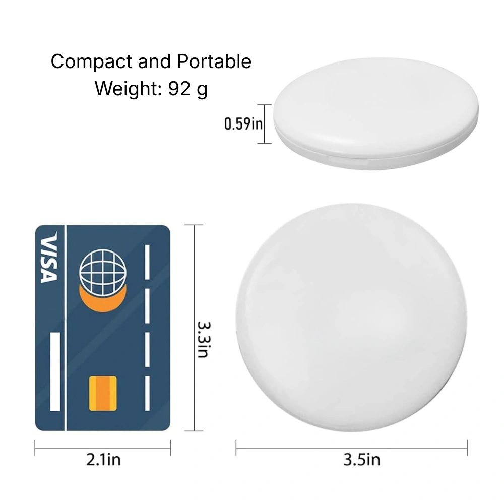 • Size/Capacity: Ultra-portable round design measuring 3.5 inches in diameter and only 0.59 inches thick.