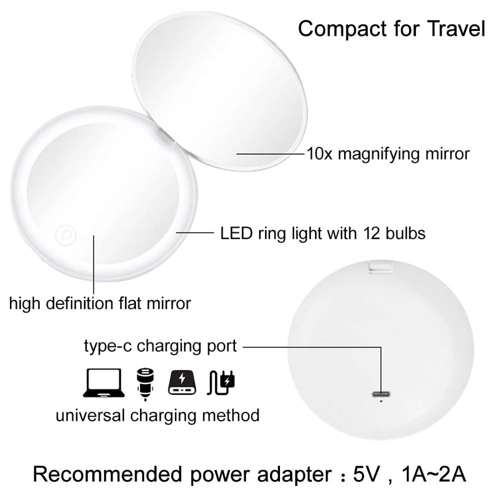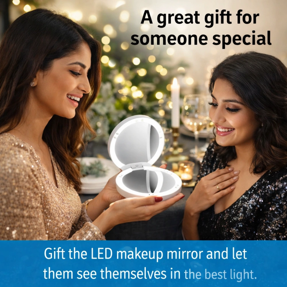This premium rechargeable pocket mirror features dual magnification and adjustable LED ring lighting for precision makeup application. Crafted from durable material, the slim design fits perfectly into small purses or pockets, offering consistent visibility and functional portability for daily use.